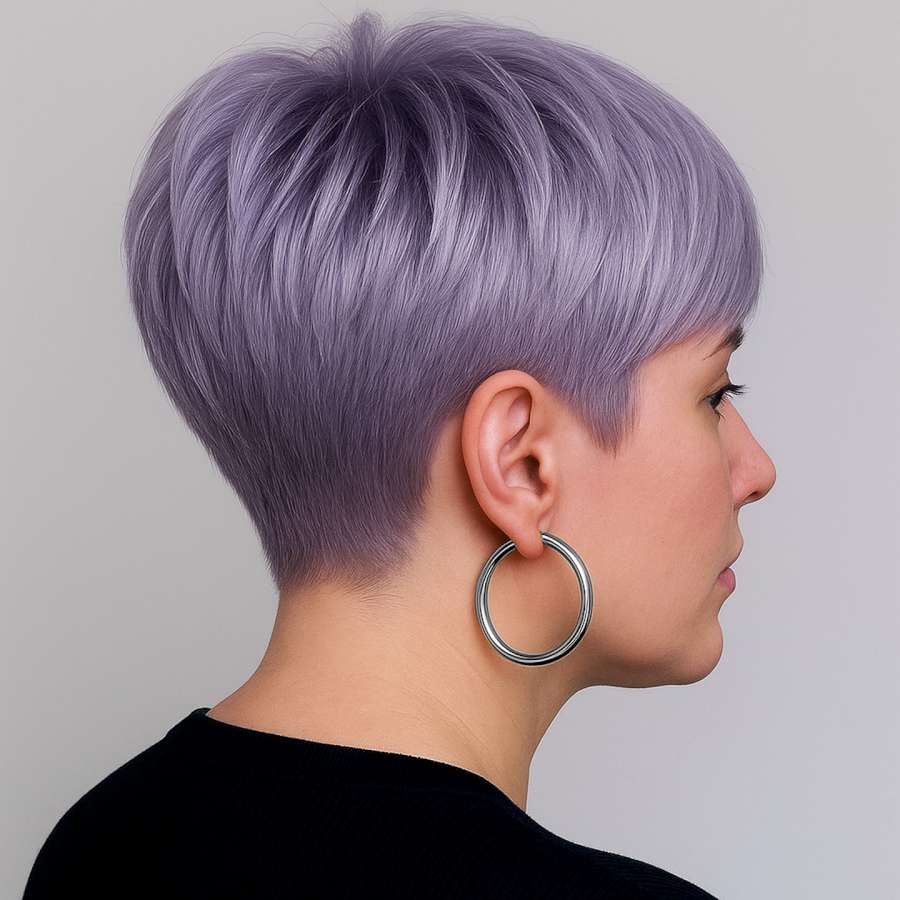 This forward-styled lavender crop is both flattering and fashion-forward. The crown is slightly lifted, giving the hairstyle body and a rounded silhouette. Short, precise layers at the sides and back contribute to a clean, contoured finish. The color choice—lavender—complements cooler skin tones and adds a subtle yet playful vibe. It’s an ideal haircut for those with fine hair who seek volume without heaviness. This look is low maintenance and easy to style, perfect for daily wear or special occasions with just a bit of texturizing spray.