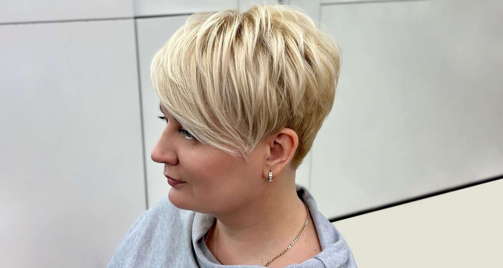You could need a side-swept fringe and a blonde bixie to get that much-needed radiance! With length at the bottom and height added by a few pixie layers, this cut has made a round face appear thinner. You can actually transform from blah to fantastic by going from brown to blonde!
