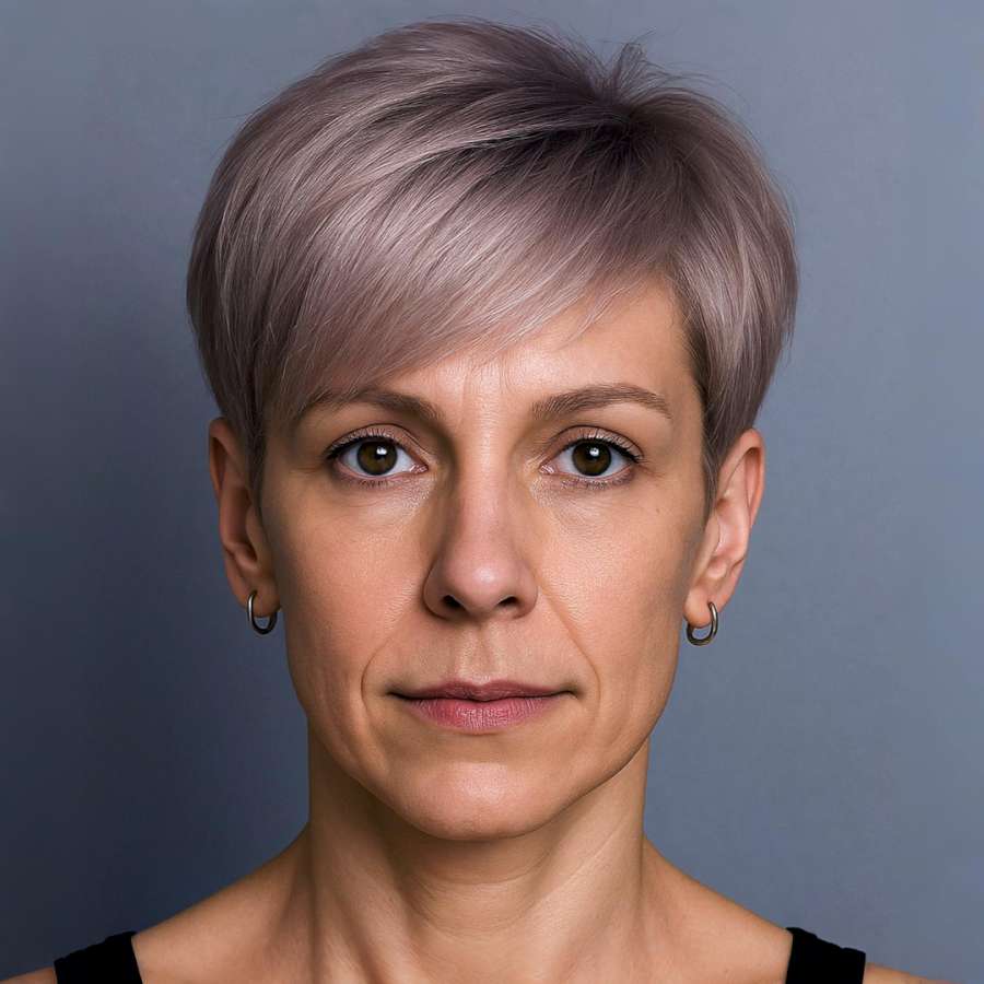 3Balanced Pixie Cut with Soft Lavender Tone and Side Fringe